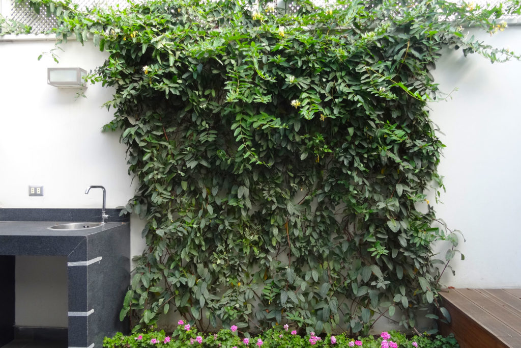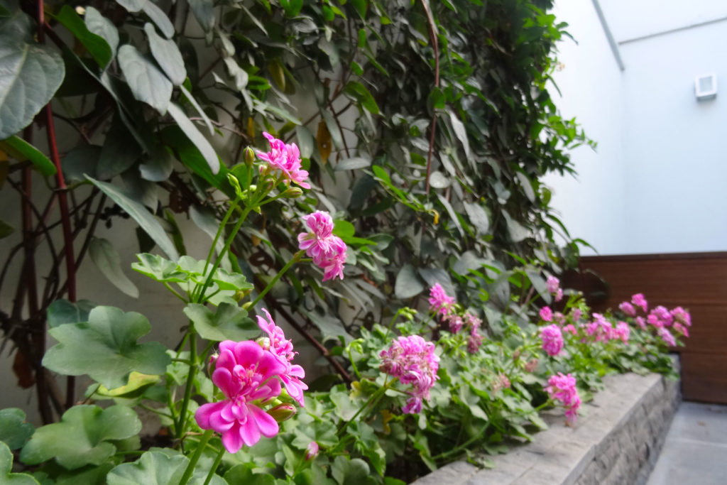 El jardin , ubicado en la entrada , fue diseñado para dar color y cálidez al ingreso de la casa, basado en macizos de vegetación herbácea y trepadora.