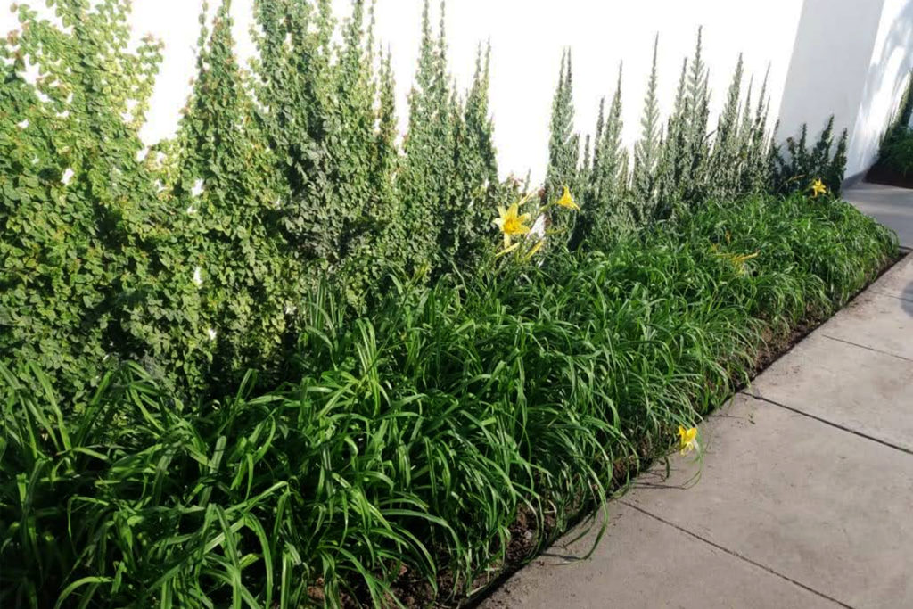 El área verde interna está dividida en pequeños jardines, con diferentes requerimientos cada uno y con distintas tonalidades de verdes y texturas. En algunas zonas se propone vegetación florida que nos garantiza la floración continua durante las diferentes estaciones del año, así como la visita de algunas aves polinizadoras, todo ello, con la finalidad de crear pequeños ecosistemas.