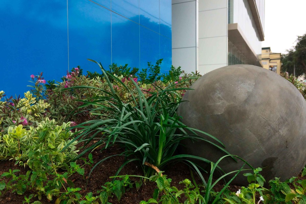 El jardín se encuentra ubicado en el piso 1 en un edificio de oficinas en el distrito de Miraflores, al lado de la caseta de vigilancia del mismo. Por ello se propuso un jardín que acompañe, con suavidad y calidez el ingreso vehicular con vegetación de porte medio y bajo para evitar cortar las visuales del personal de seguridad e interferir con su trabajo diario.