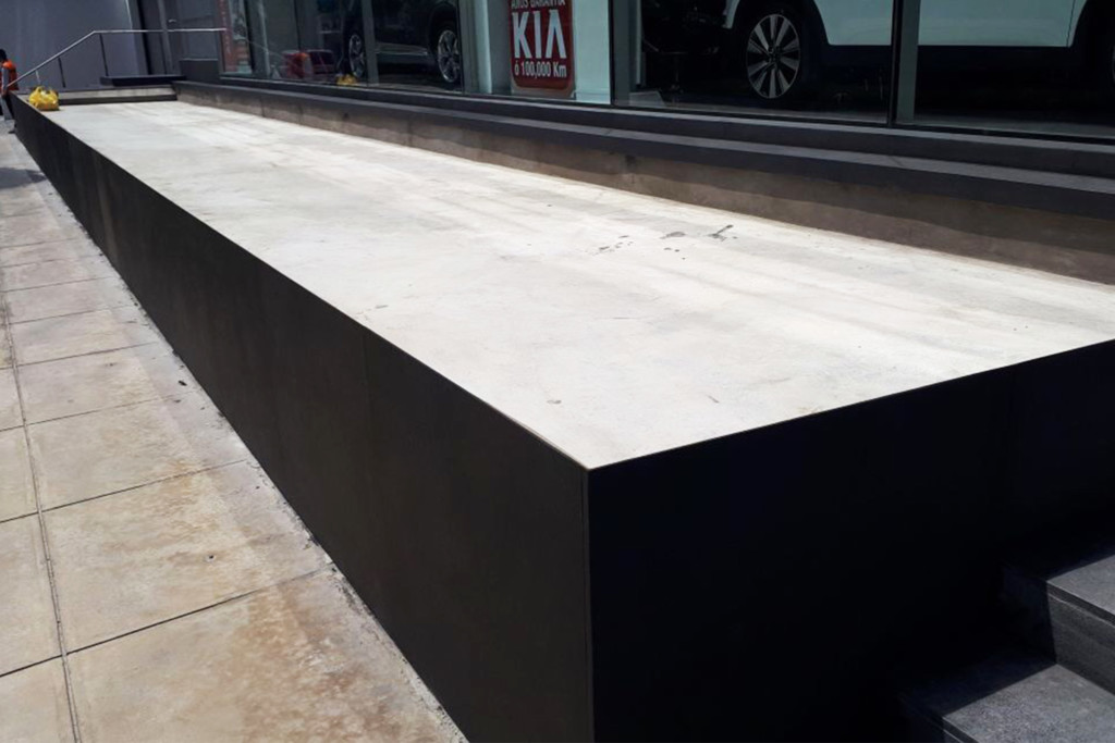 Ubicado en el distrito de Miraflores. El jardín se encuentra en el exterior del primer piso del edifico, zona comercial del mismo, al lado de la vereda. Se toma en cuenta la ubicación del jardín pues al estar debajo del escaparate de tienda, nos referencia para la elección de vegetación de porte medio bajo, creando el marco vegetal sin cerrar visuales. Para ello se crearon macizos vegetales ortogonales de diferentes textura y color, así como líneas inertes entre ellos para el mantenimiento. La vegetación es de poco mantenimiento y poco requerimiento hídrico siendo en su mayoría Xerófitas.
