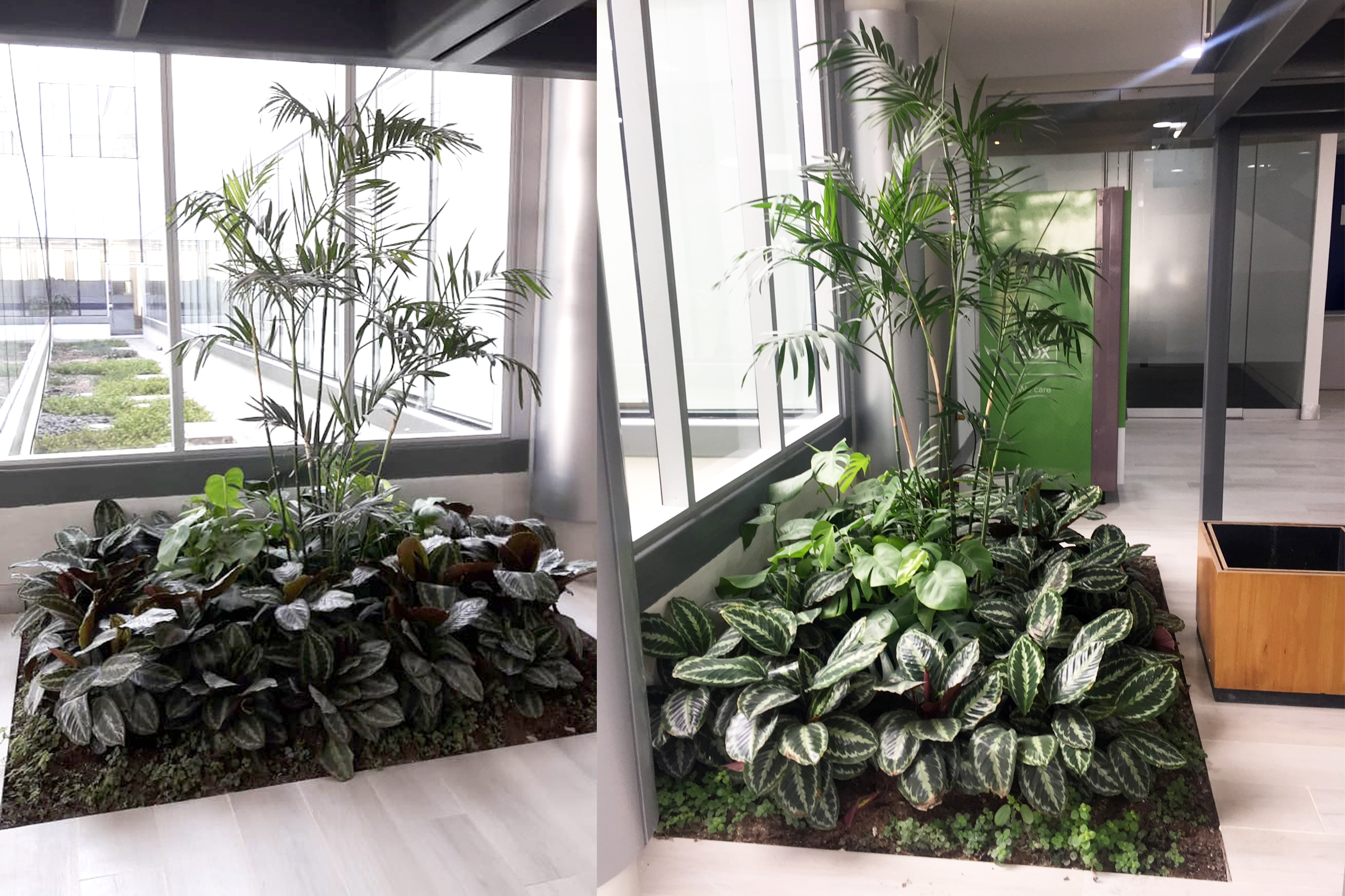 Para dicho proyecto, se propuso una vegetación de interior por sus condicionantes climáticas, creando un jardín semi tropical, el cuál le brinda calidez al espacio